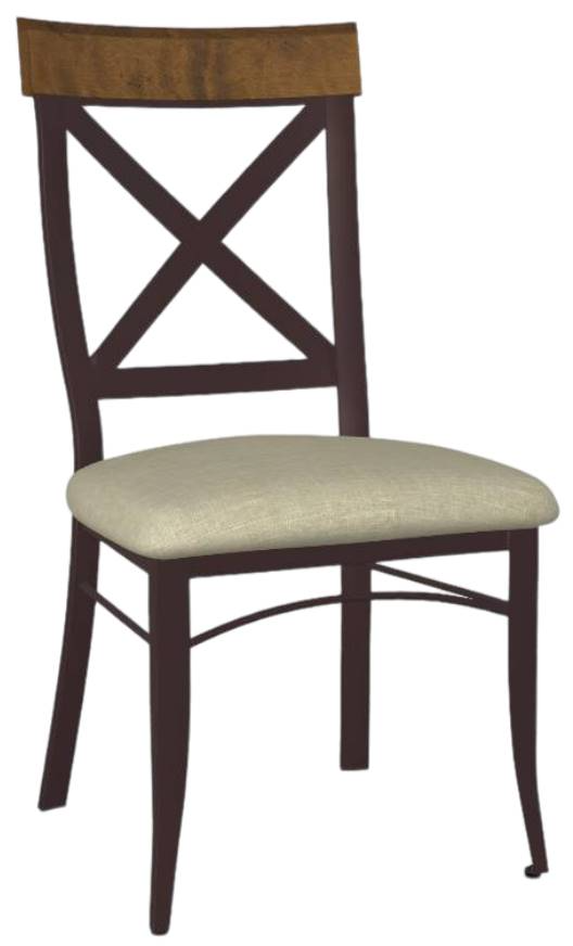 Upholstered seat and metal backrest with solid wood (birch) accent