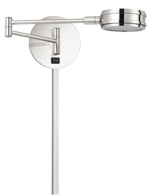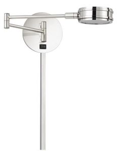 Integrated LED swing arm wall lamp with on off rocker switch and adjustable head.