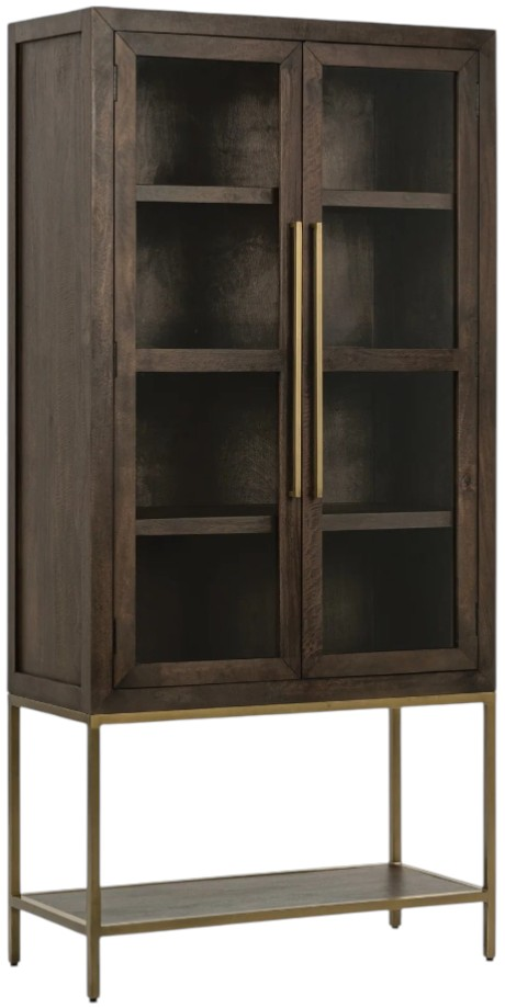 Bring timeless elegance and functionality to your home with this tall cabinet, crafted from solid mango wood and supported by sleek metal legs. Designed with glass-paneled doors and spacious shelving, it offers the perfect display for dinnerware, books, or decorative accents.Read More