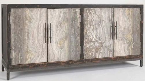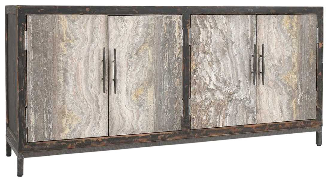 This rustic four-door sideboard offers both style and functionality, featuring a reclaimed distressed pine frame and travertine stone doors for a unique, earthy look. Enhanced with durable metal hardware, it provides ample storage with an adjustable and removable shelf for flexible organization.Read More