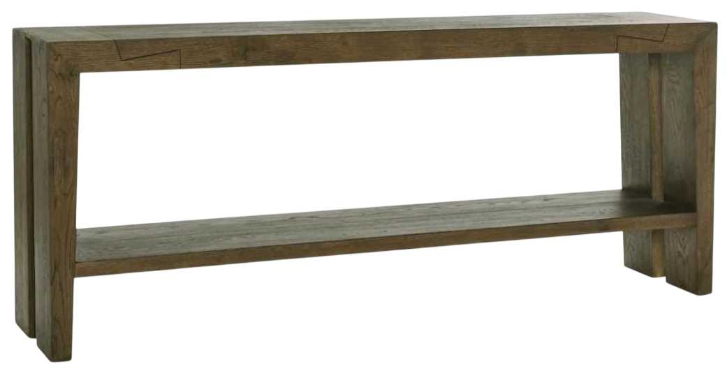A spacious top offers room for décor and everyday essentials, while the lower shelf adds functional storage and visual interest. Finished in earthy, timeworn tones, this console blends rustic charm with modern simplicity, enhancing hallways, living rooms, and open spaces with timeless style.