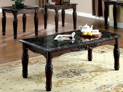 A lovely accent to a traditional living area, these tables feature carved trim legs and a faux marble table top. Intricate designs and a deep dark walnut finish tops this classy look.Read More