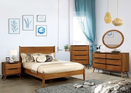 For a quick modern update to your home, this collection will add that trendy mid-century appeal. Coordinating case goods boast slim flared legs and recessed handle drawer pulls. A choice of oval or rectangular wall mountable mirror completes this set.Read More