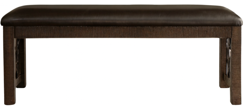 A traditional design with hints of medieval flair, this beautiful dining set features rich hues and ornate details that are perfect for fine dining. Sit comfortably upon the brown leatherette bench that come paired with stunning metal scrollwork and classic nailhead trim.Read More