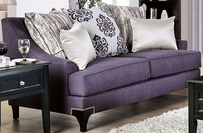 Low arms that sweep up to the back and a dainty nailhead trim dotting around the feet give this sofa collection its stunning looks. The throw pillows feature a variety of designs that pop and give a stunning counter to the solid upholstery of the pieces.Read More