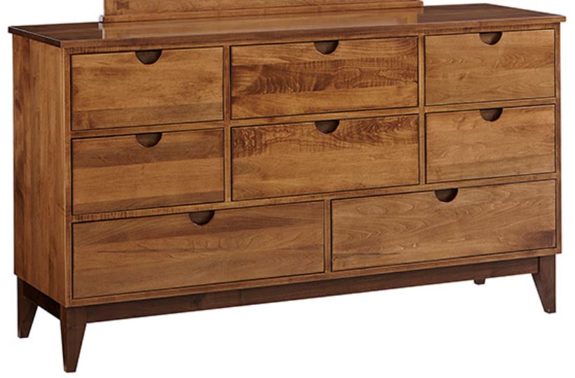 This Dresser from Simplicity Bedroom Collection is shown in Brown Maple with walnut accents and #99 Toffee finish. Add style to your bedroom area by incorporating this dresser into your home.Read More