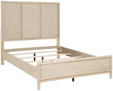 Introduce a serene, organic aesthetic to your sleeping space with this beautiful Queen panel bed. Crafted from a durable blend of wood and engineered wood and finished with a genuine oak veneer, this bed frame showcases the natural beauty of wood grain in a soothing light brown tone.Read More