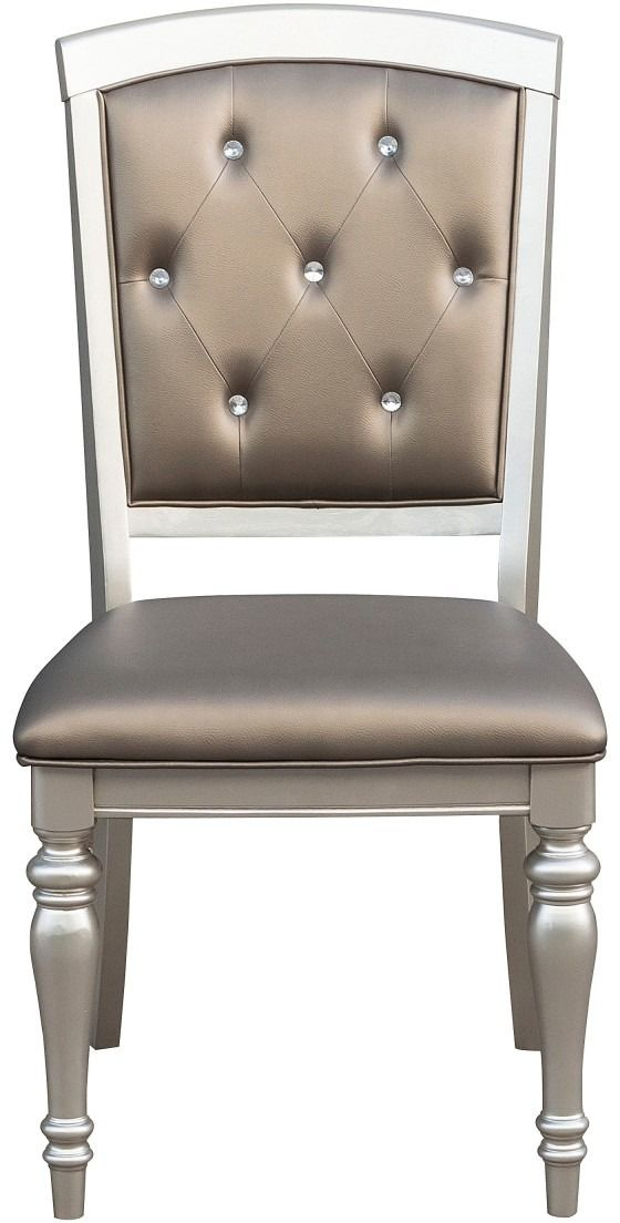 Casting a glamorous reflection of your personal style, the Orsina collection will dazzle your friends and family as they enter the sophisticated dining space you have created. The pearl faux leather of the chairs lends elegant contrast. Crystal button tufting lends additional sparkle.Read More