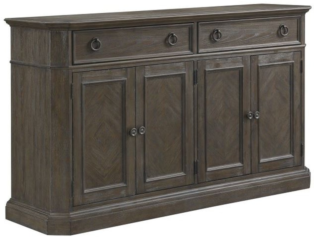 The server’s door fronts catch your eye with their quadrant v-matched veneer pattern, while the ash veneer is highlighted with a driftwood brown finish for a wonderfully weathered aesthetic. The server features behind-door and drawer storage, allowing for ample space in which to place your tabletop accessories.Read More