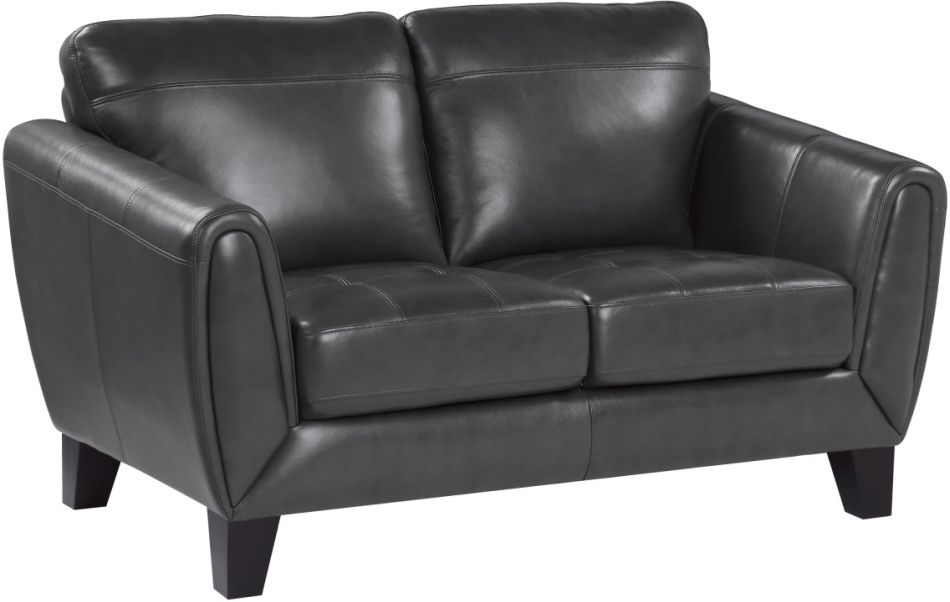 The subtle retro look of the Spivey collection will pair with modern aesthetic of your home’s décor, creating a classically cool look that is sure to turn heads. The streamlined profile of the love seat is covered in an dark gray hued top grain leather.Read More