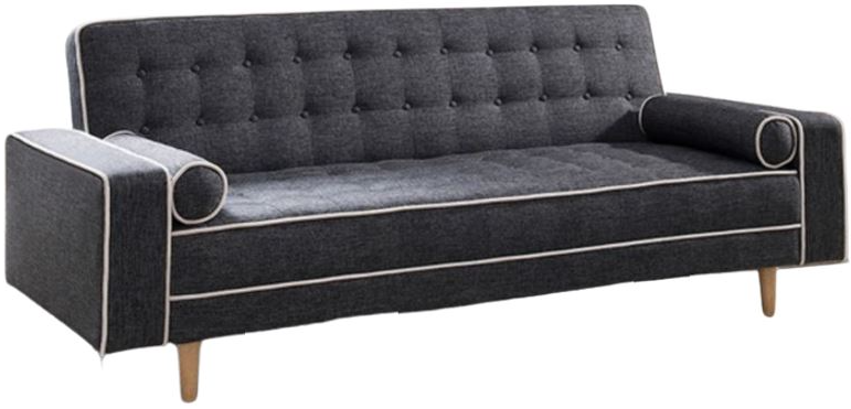 Linen upholstered white piping square armrests click clack convertible sofa bed