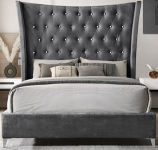 The Milton Green Stars Dark Gray California King Wing Back Tufted Headboard Platform Bed with regal flared wing back soft fabric upholstered tufted buttons platform bed with metal corner front leg. Crafted with attention to detail, it offers durability and style.Read More