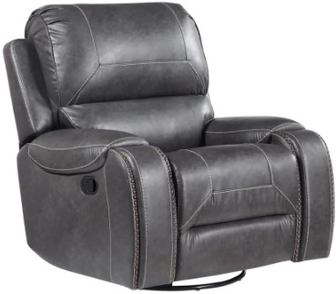 Faux leather nailheads trim manual rocking swivel recliner chair